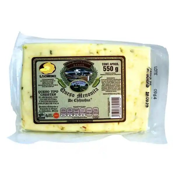 Queso Lacmeno Menonita de Chihuahua Con Jalapeño 550 g